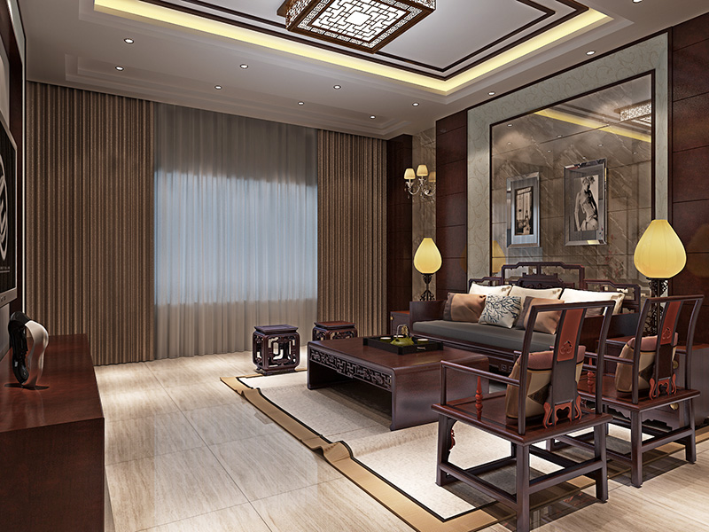 客厅经过精心的布置,别出心裁,大理石肌理拱形电视背景墙,明亮素实的窗帘,精美的地面拼花,与之相呼应的吊顶,再加上造型简洁大方的沙发,视觉上呈现一种典雅和大气并存的轻松空间。...